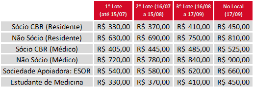 O valor de inscrição será calculado pela categoria e período de inscrição (Lote).