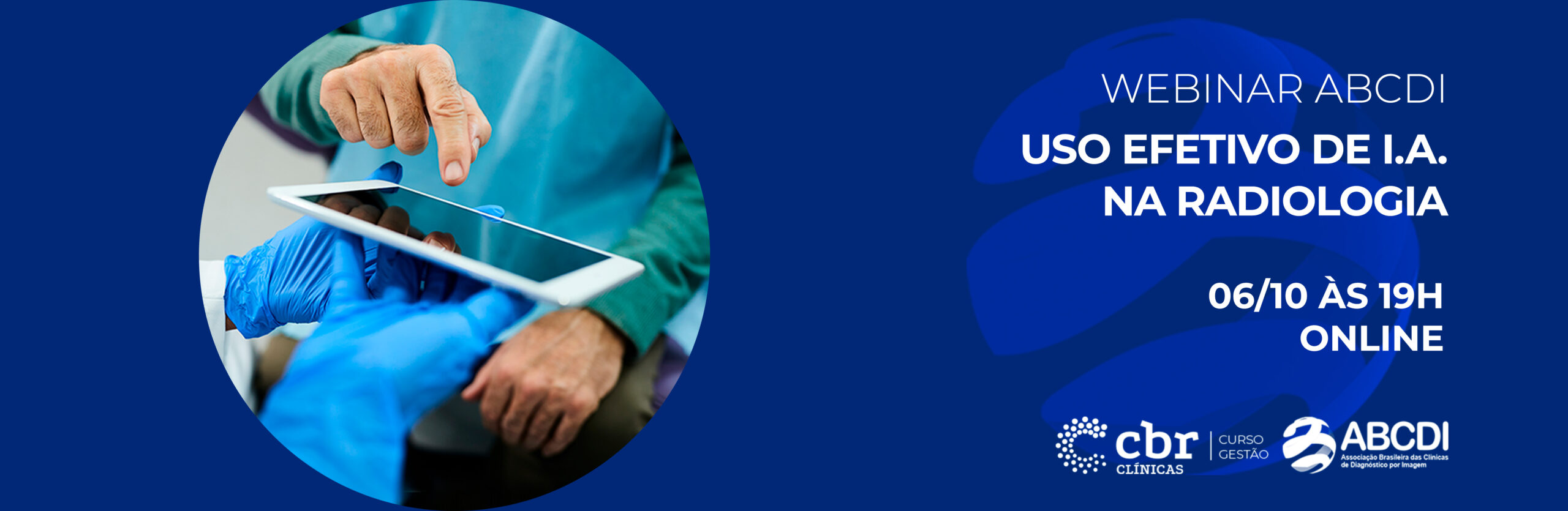 O Webinar ABCDI tem como objetivo explorar o uso efetivo da Inteligência Artificial (IA) na radiologia, destacando como essa tecnologia está transformando a prática clínica e o futuro da especialidade. A proposta é apresentar de forma prática e estratégica como a IA pode contribuir para: